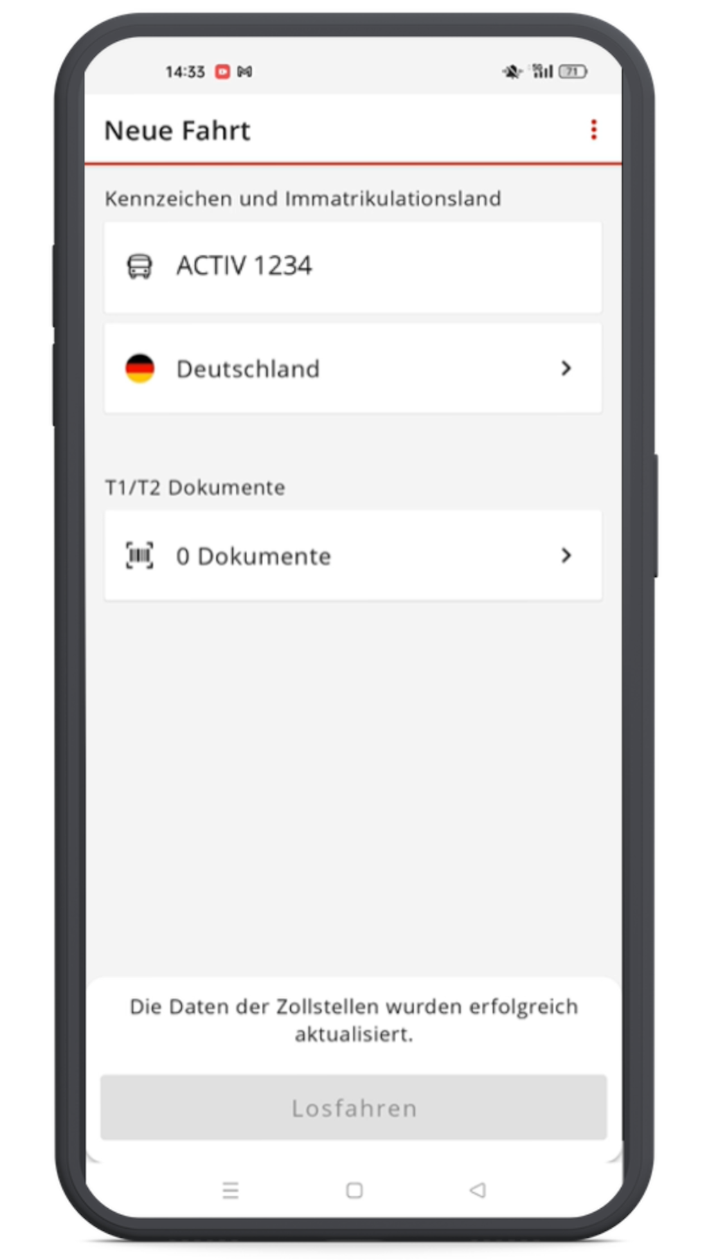- Transitpapiere vor der Grenze erfassen