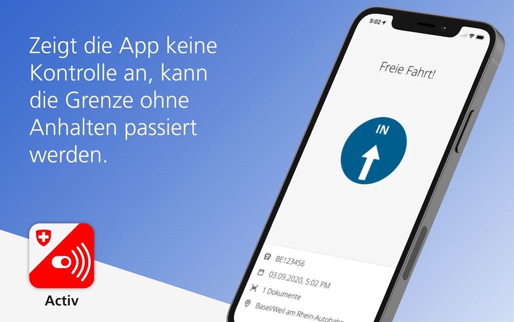 Nutzen Sie die kostenlose Activ App und fahren Sie im Transit schneller durch den Schweizer Zoll.