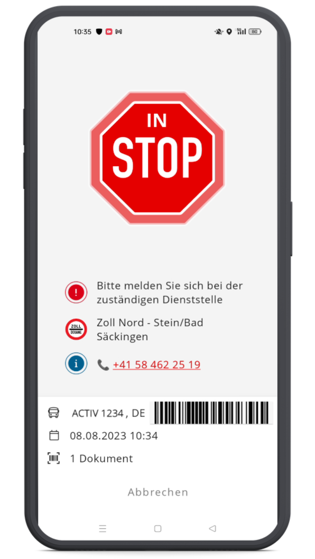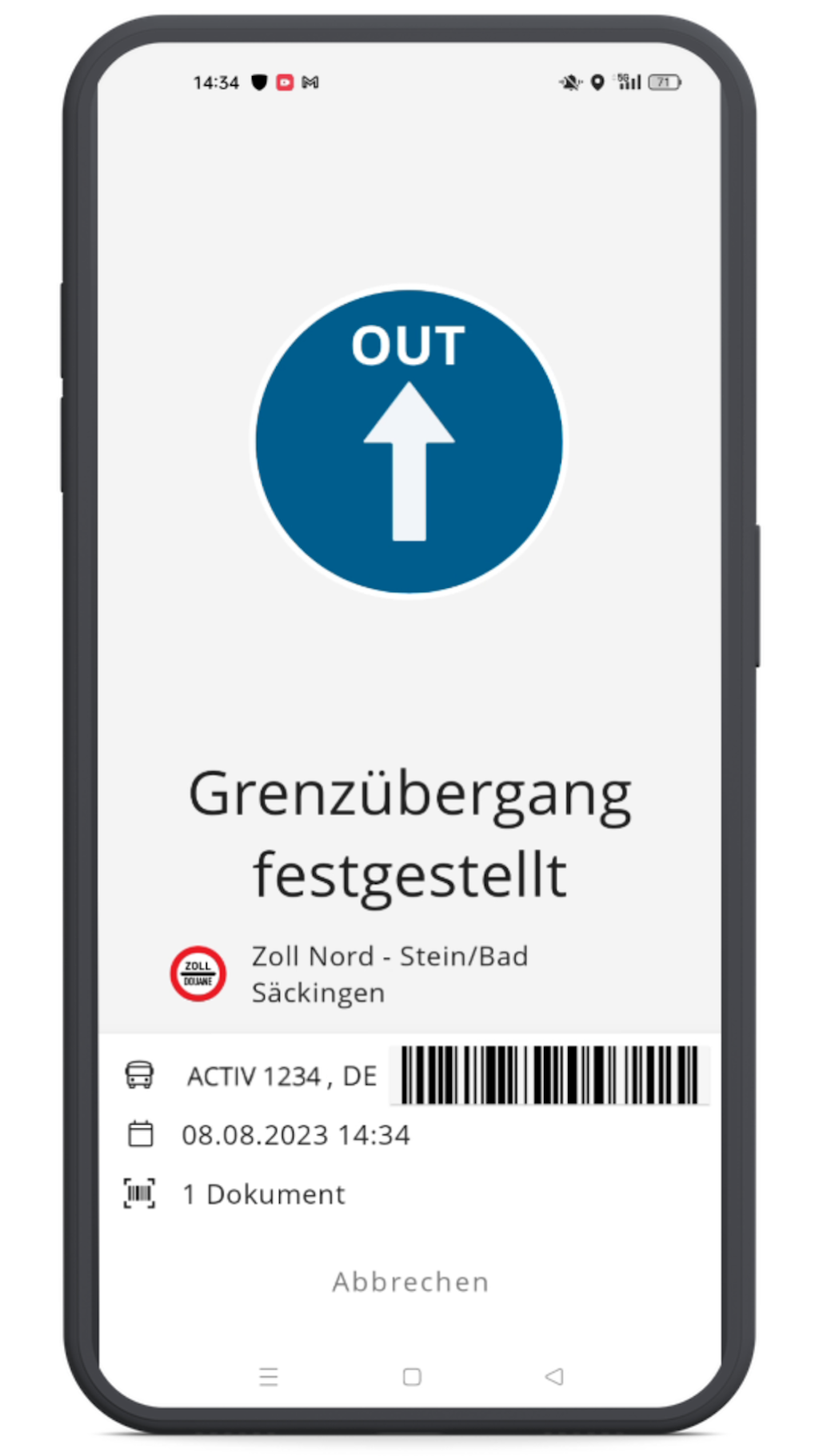 - Kontrollergebnis an der Grenze vorweisen