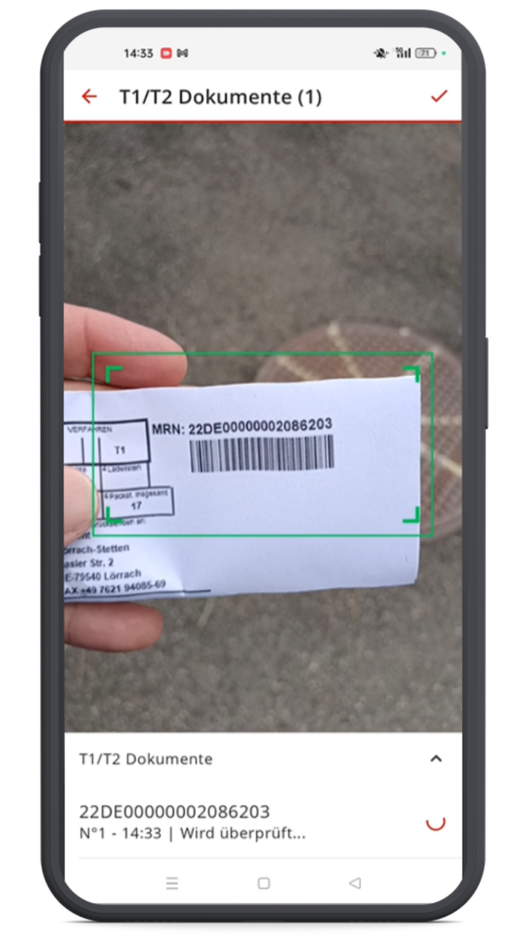- Transitdokumente T1/T2 (MRN) scannen
