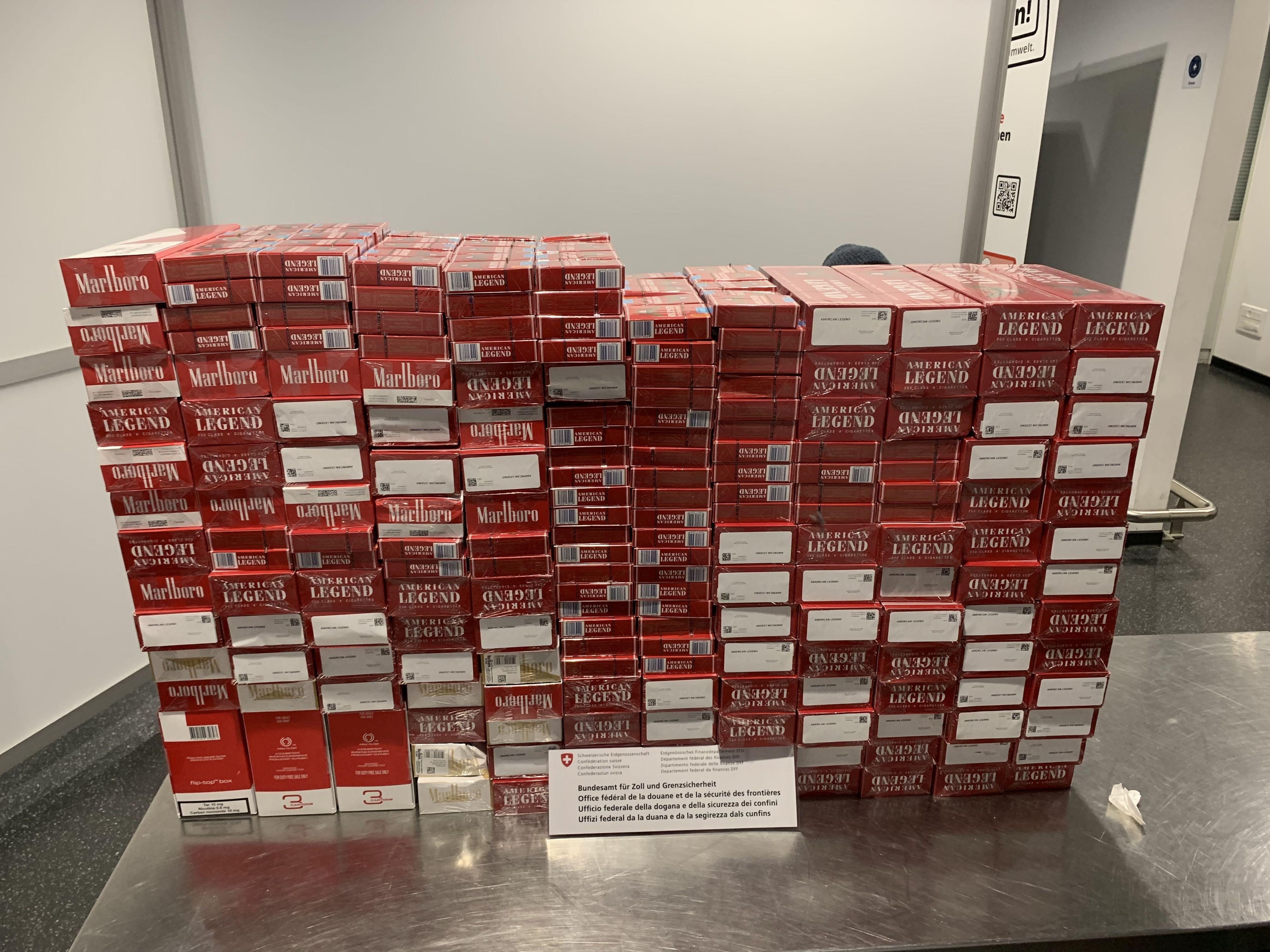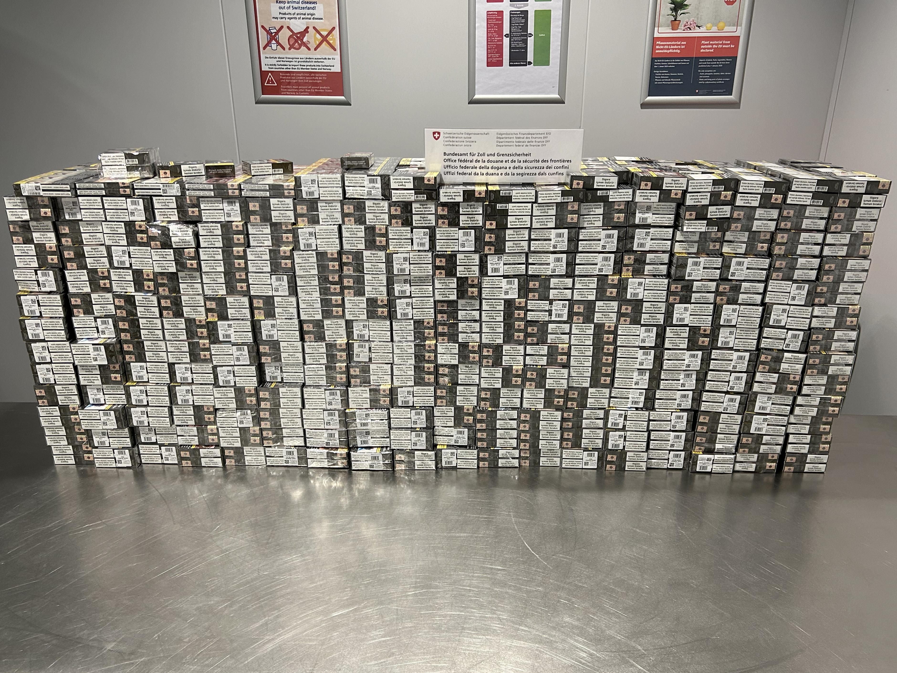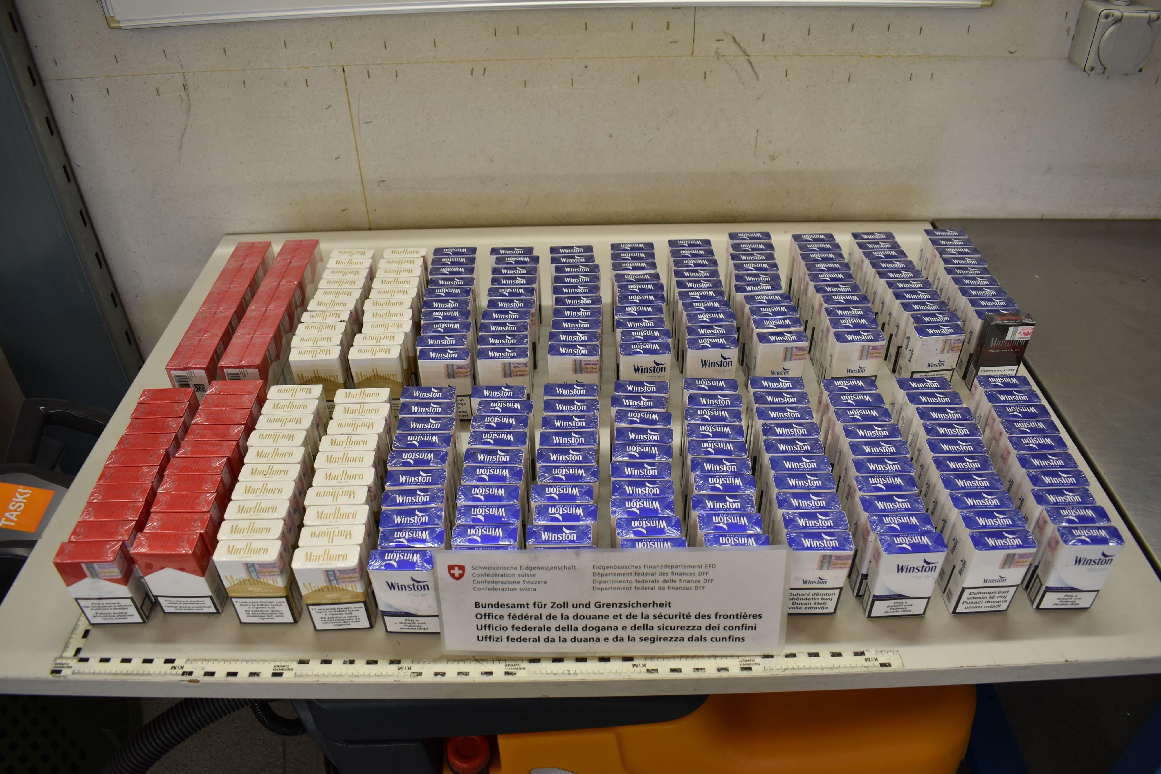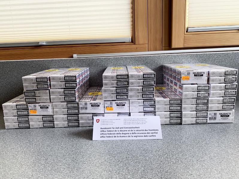 Kreuzlingen (TG): Am 24. Juni 2025 führte ein Kontrollteam des BAZG am Grenzübergang Kreuzlingen-Autobahn bei einem Personenwagen mit Schweizer Kennzeichen eine Zollkontrolle durch. Die beiden rumänischen Insassen des Fahrzeuges gaben an, dass sie nichts anzumelden hätten. Eine Kartonkiste im Kofferraum offenbarte jedoch das Gegenteil: Sie enthielt insgesamt 16 660 Zigaretten verschiedener Marken. Da die beiden Männer weder die dafür fälligen Einfuhrabgaben in der Höhe von knapp 4000 Franken noch das Bussendepositum bezahlen konnten, wurden sowohl die Zigaretten als auch das Fahrzeug temporär sichergestellt. Zudem leitete das BAZG ein Strafverfahren ein, in dessen Verlauf sich herausstellte, dass die Zigaretten überdies gefälscht waren.