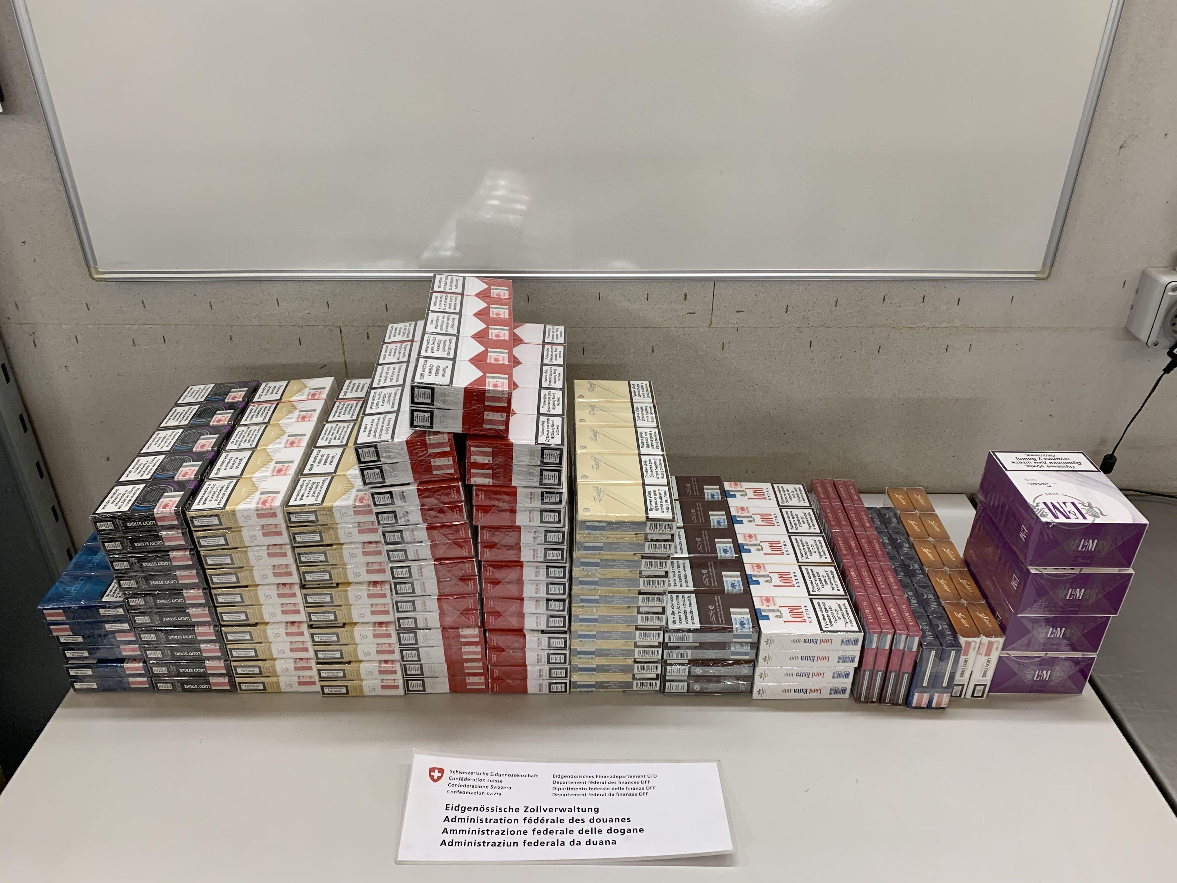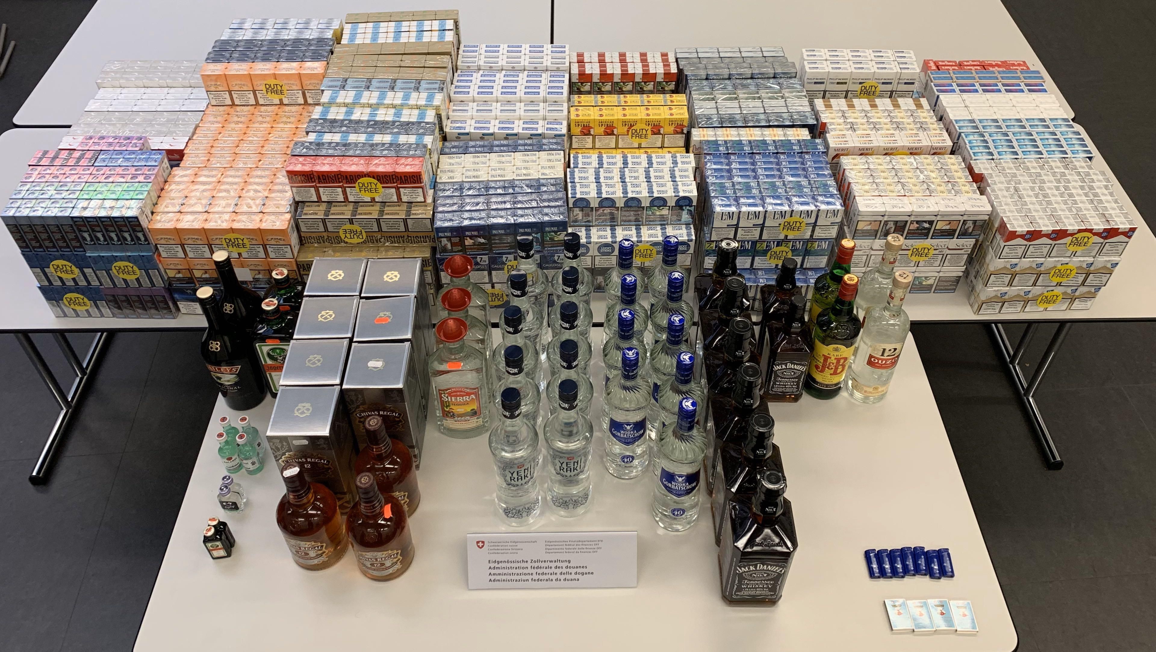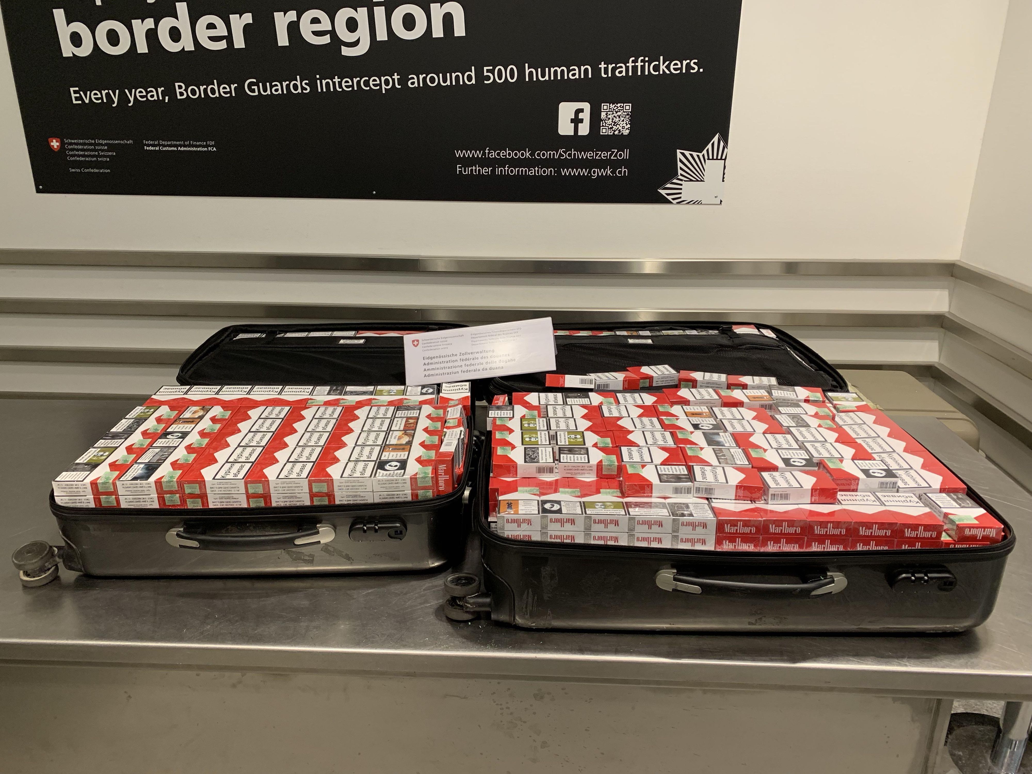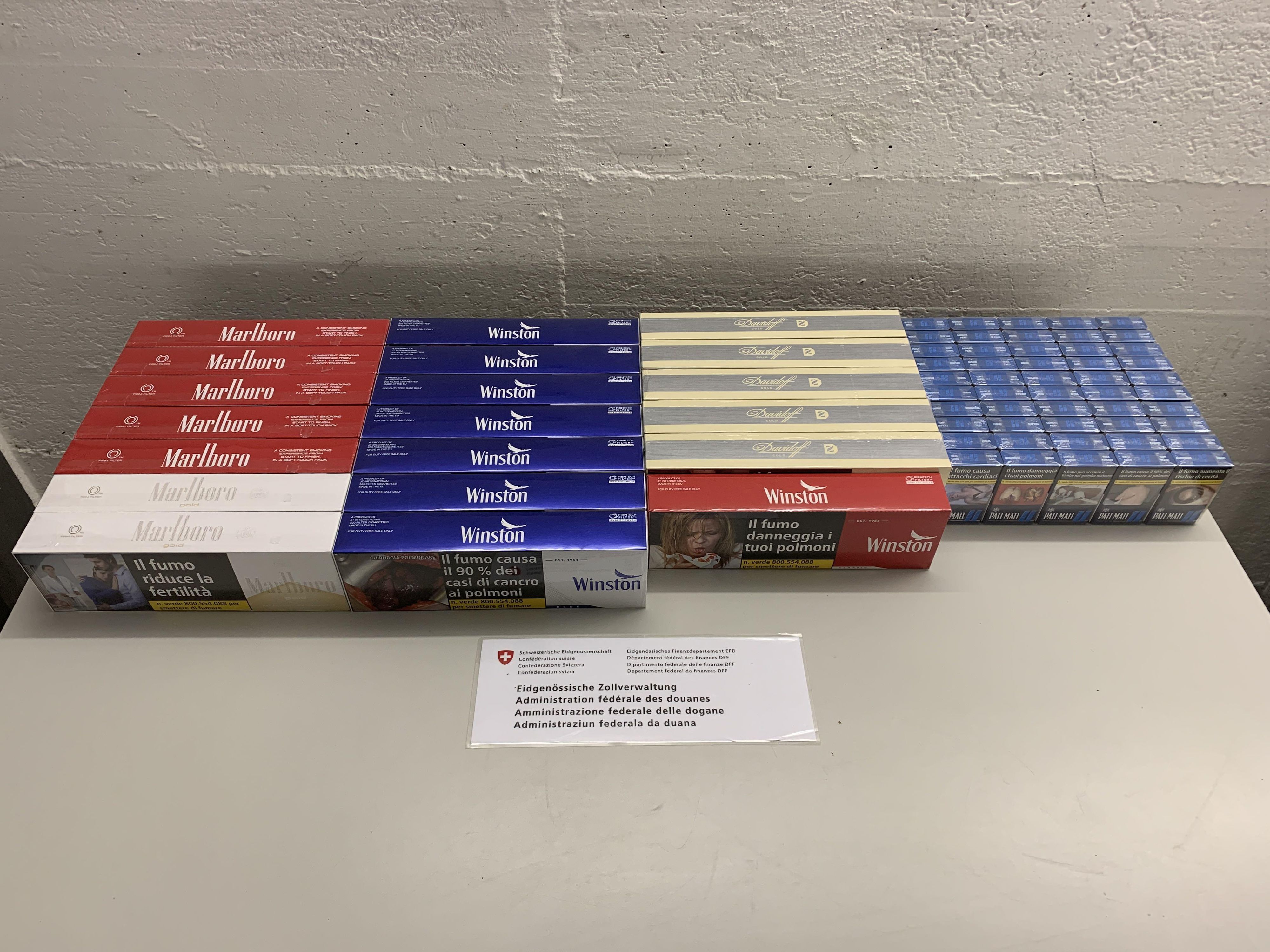 Kreuzlingen (TG): Am 24. Juni 2025 führte ein Kontrollteam des BAZG am Grenzübergang Kreuzlingen-Autobahn bei einem Personenwagen mit Schweizer Kennzeichen eine Zollkontrolle durch. Die beiden rumänischen Insassen des Fahrzeuges gaben an, dass sie nichts anzumelden hätten. Eine Kartonkiste im Kofferraum offenbarte jedoch das Gegenteil: Sie enthielt insgesamt 16 660 Zigaretten verschiedener Marken. Da die beiden Männer weder die dafür fälligen Einfuhrabgaben in der Höhe von knapp 4000 Franken noch das Bussendepositum bezahlen konnten, wurden sowohl die Zigaretten als auch das Fahrzeug temporär sichergestellt. Zudem leitete das BAZG ein Strafverfahren ein, in dessen Verlauf sich herausstellte, dass die Zigaretten überdies gefälscht waren.