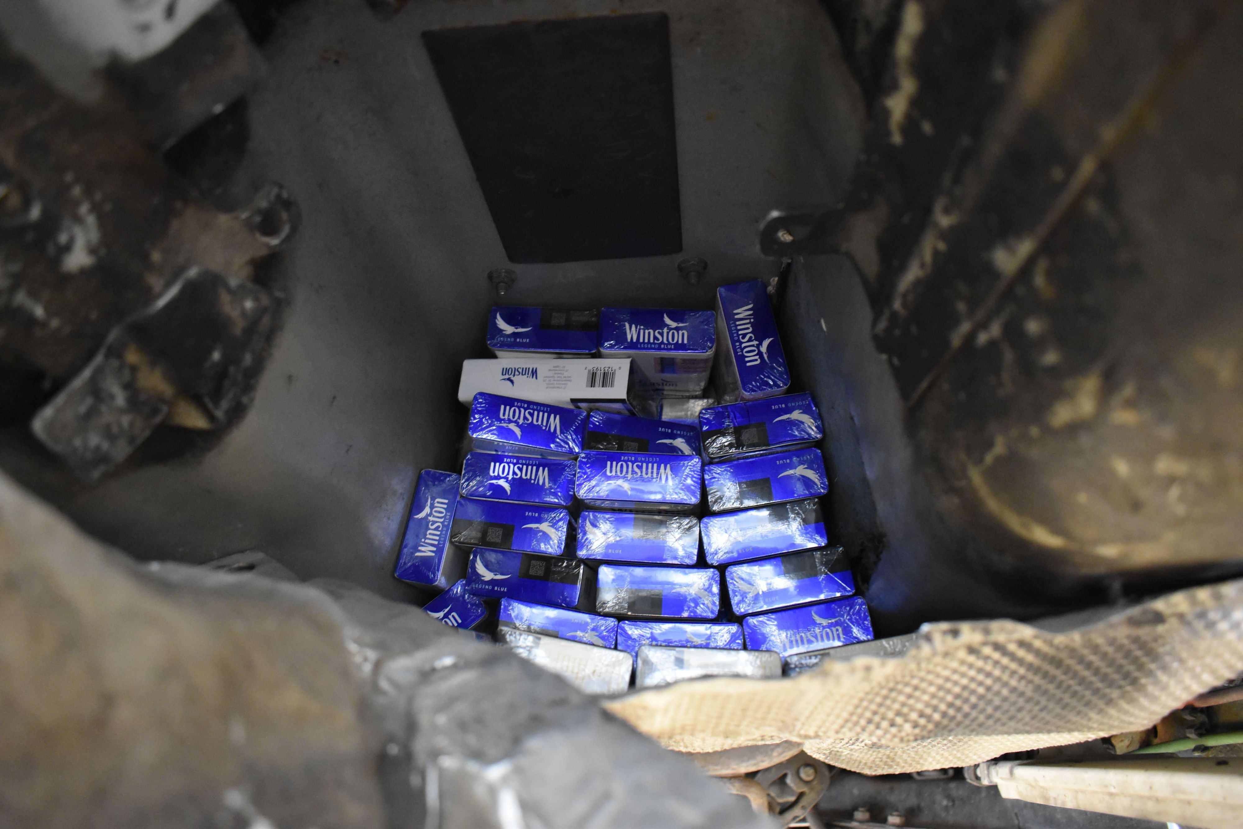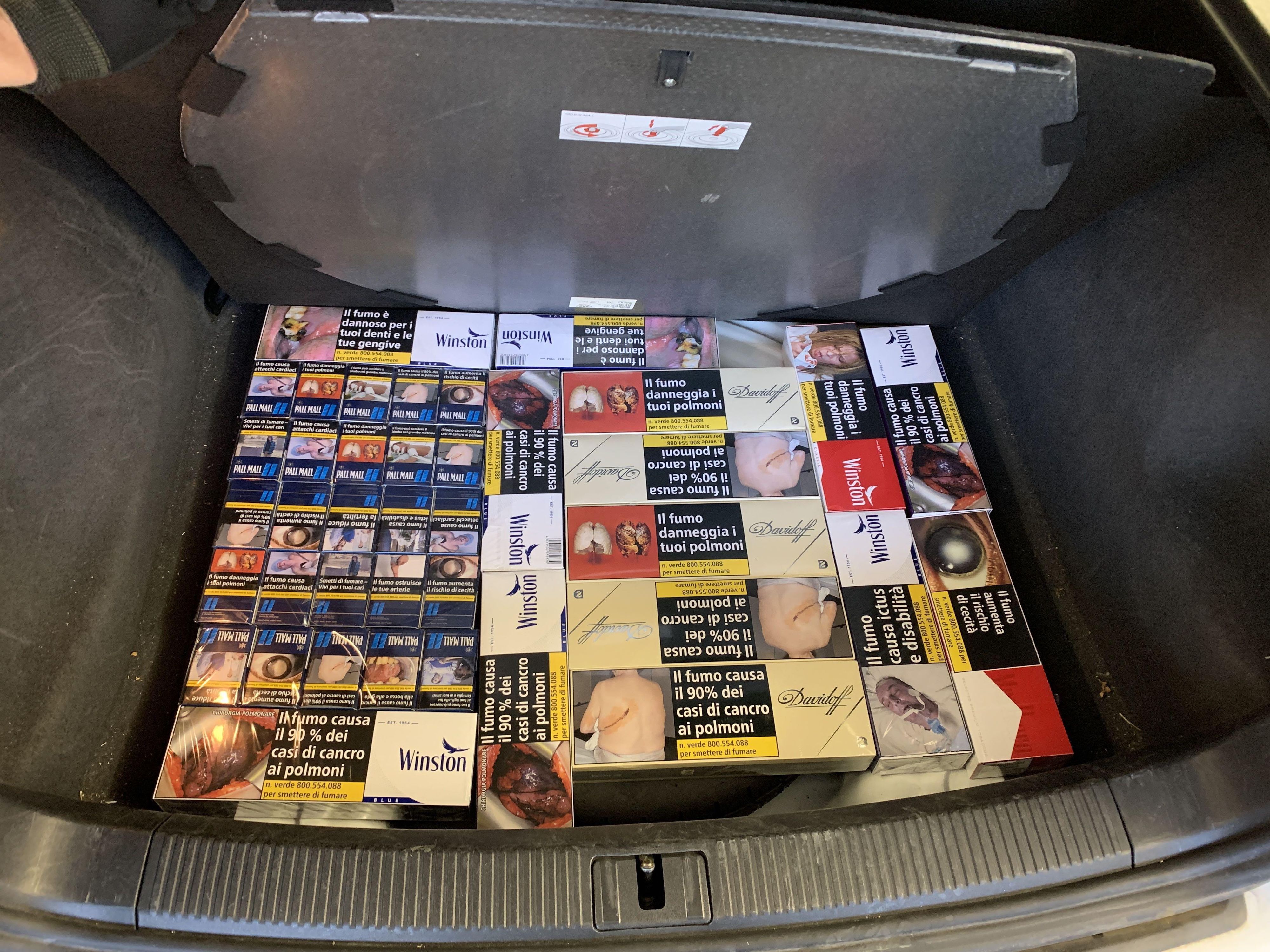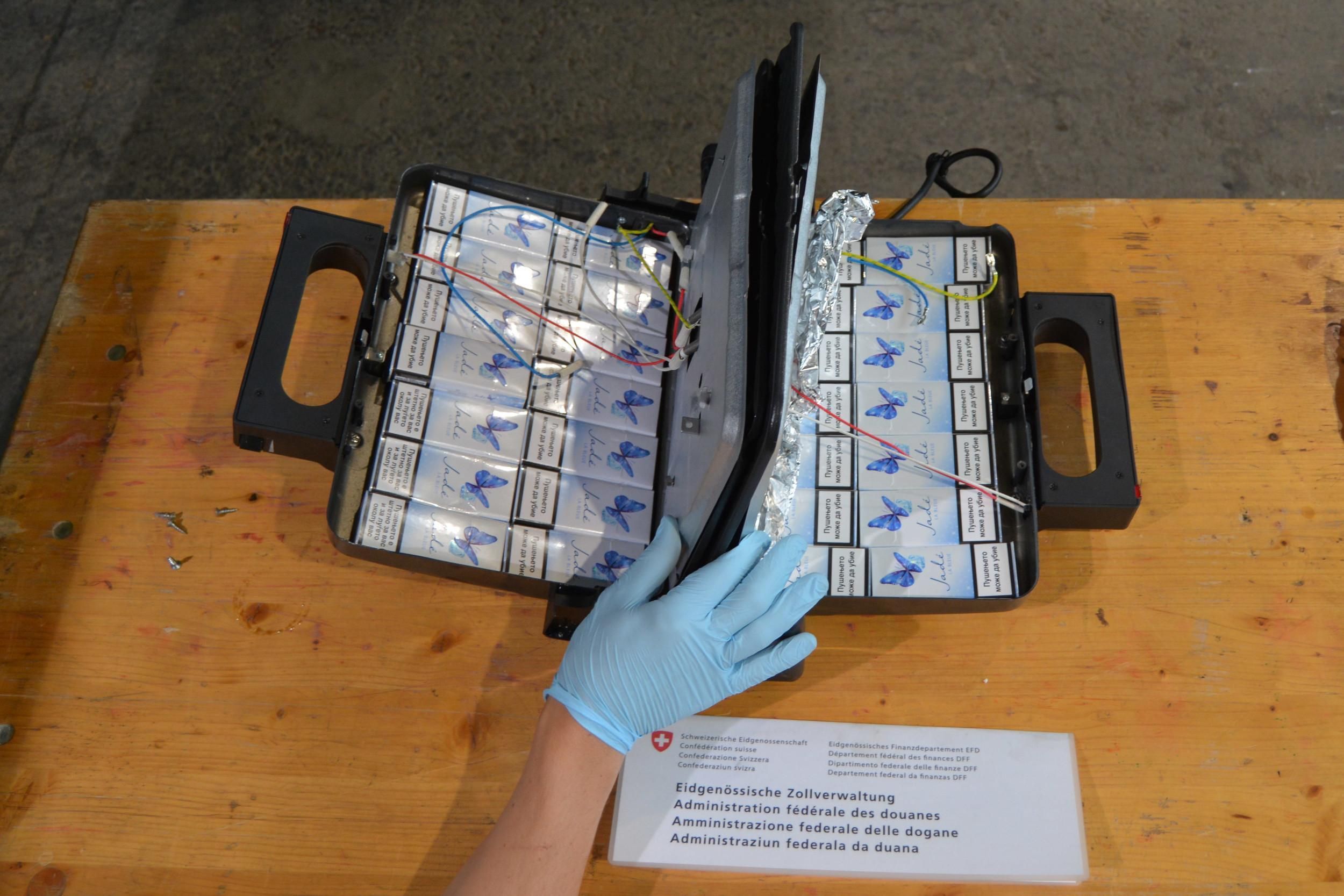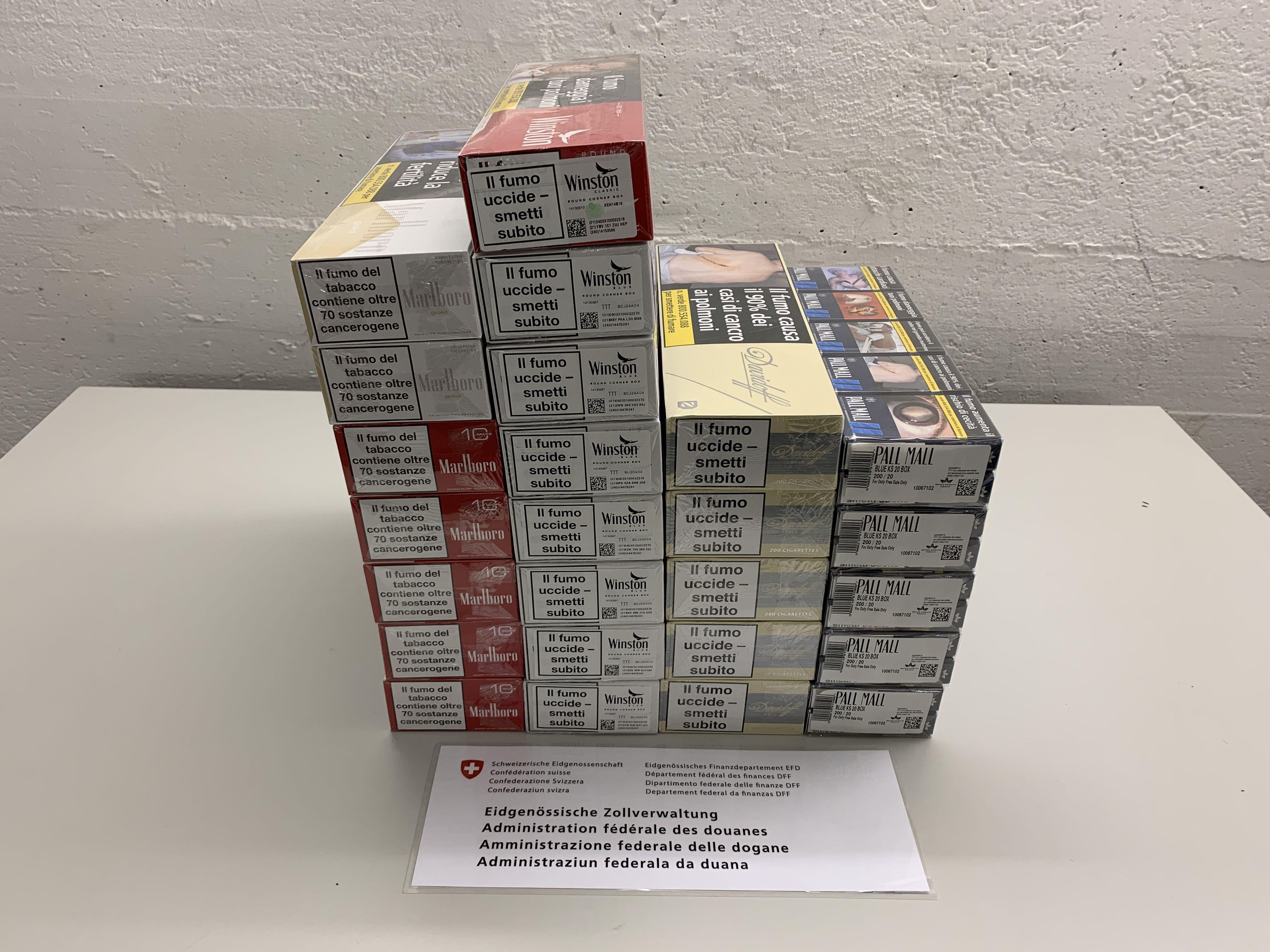 Kreuzlingen (TG): Am 24. Juni 2025 führte ein Kontrollteam des BAZG am Grenzübergang Kreuzlingen-Autobahn bei einem Personenwagen mit Schweizer Kennzeichen eine Zollkontrolle durch. Die beiden rumänischen Insassen des Fahrzeuges gaben an, dass sie nichts anzumelden hätten. Eine Kartonkiste im Kofferraum offenbarte jedoch das Gegenteil: Sie enthielt insgesamt 16 660 Zigaretten verschiedener Marken. Da die beiden Männer weder die dafür fälligen Einfuhrabgaben in der Höhe von knapp 4000 Franken noch das Bussendepositum bezahlen konnten, wurden sowohl die Zigaretten als auch das Fahrzeug temporär sichergestellt. Zudem leitete das BAZG ein Strafverfahren ein, in dessen Verlauf sich herausstellte, dass die Zigaretten überdies gefälscht waren.