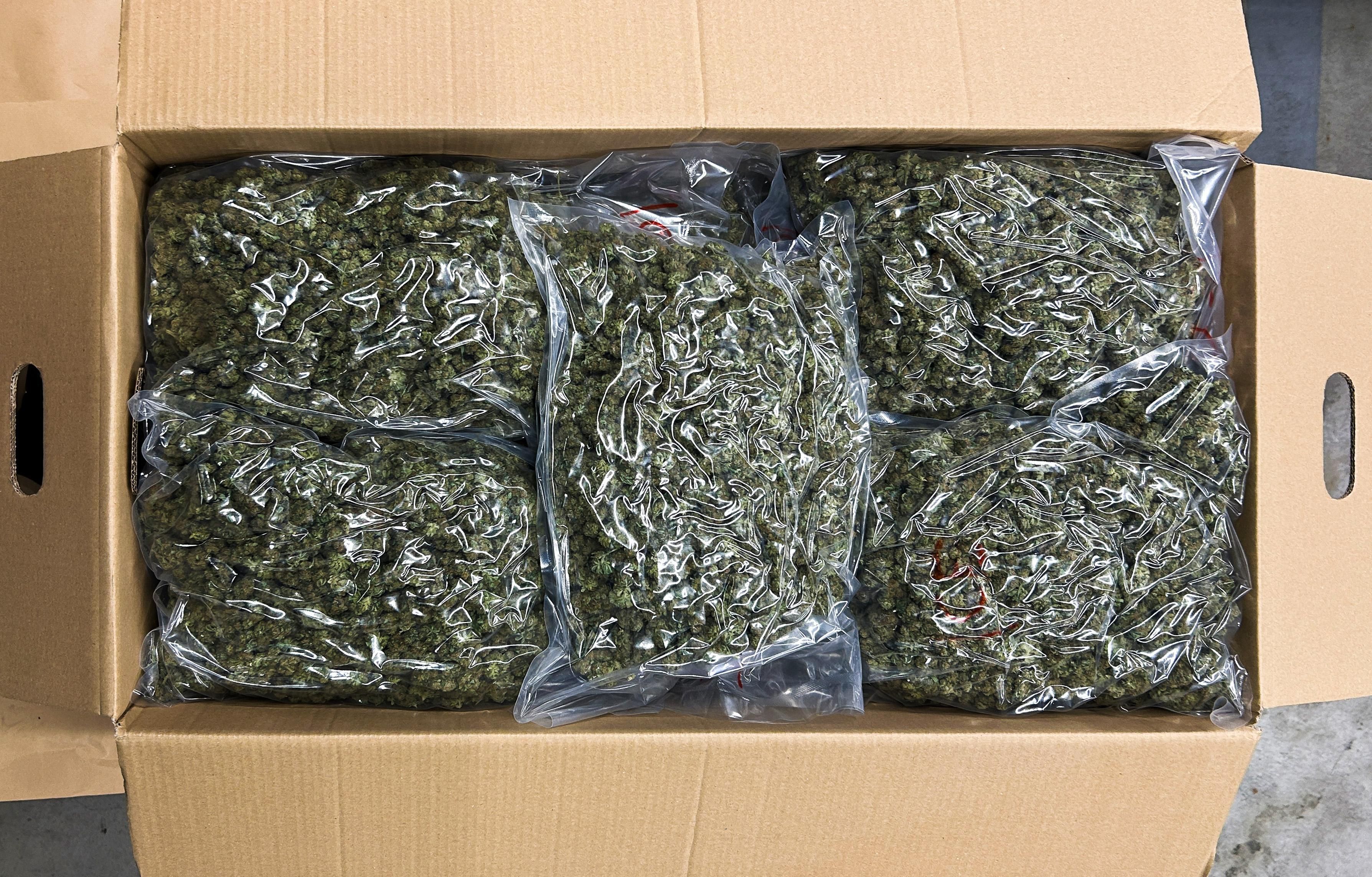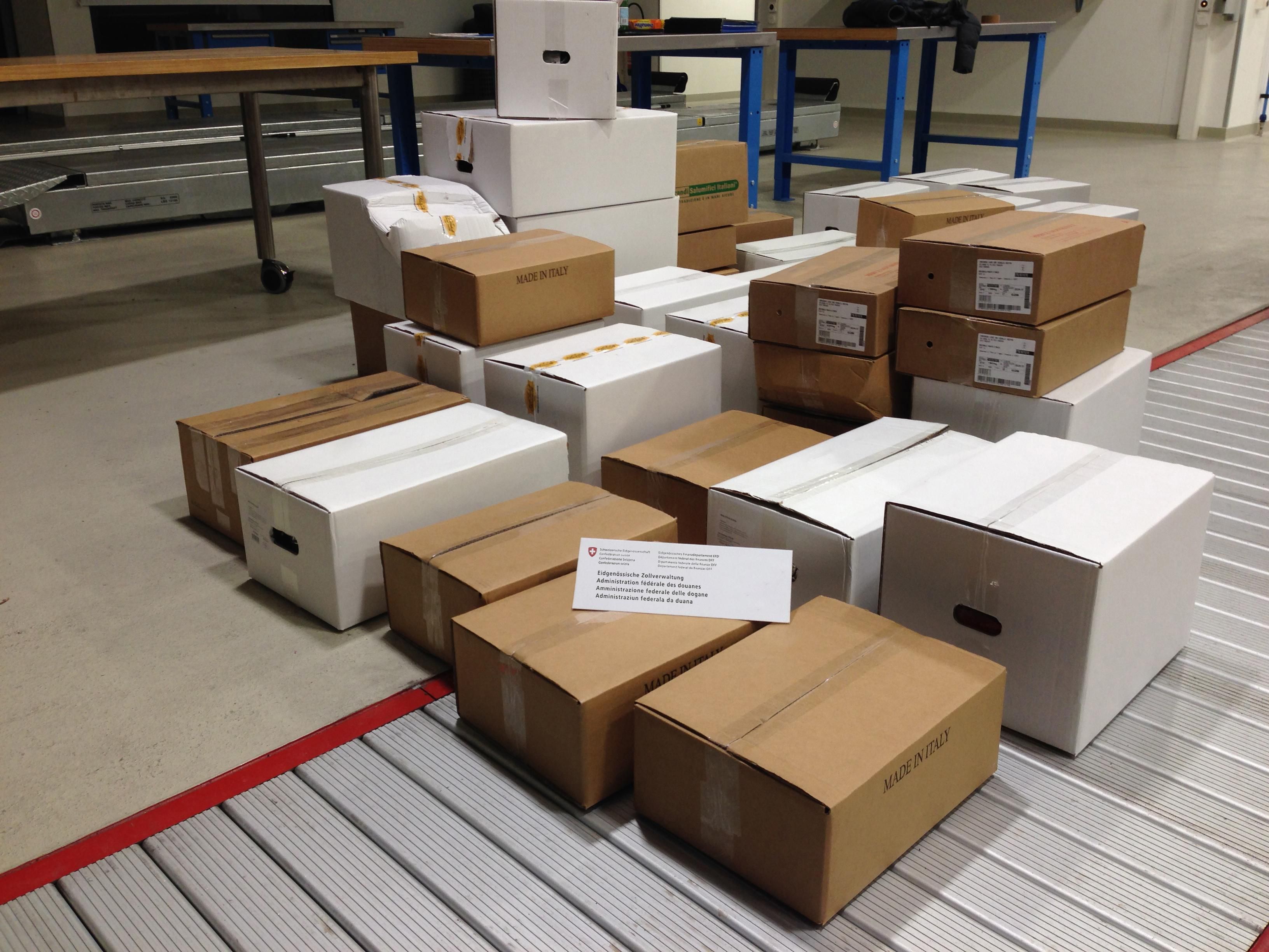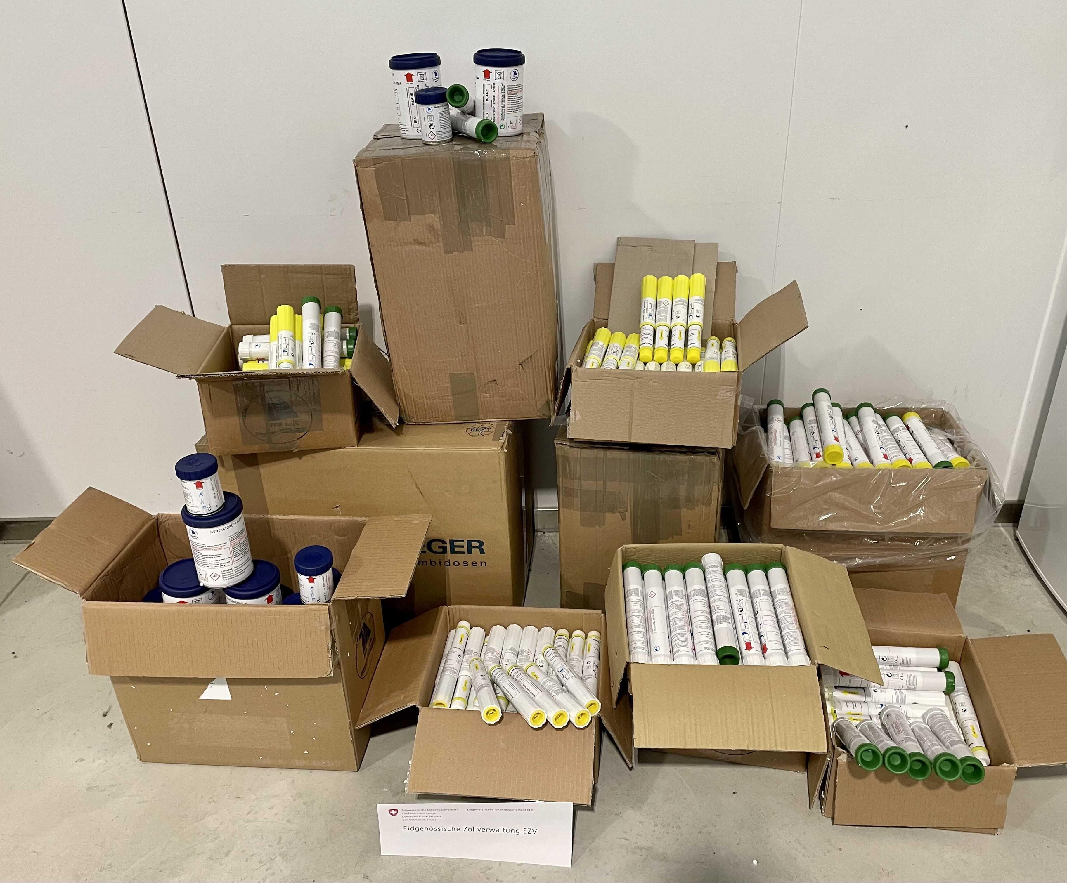 Kartons mit CBD-Paketen, die synthetische Cannabinoide enthalten. — © BAZG