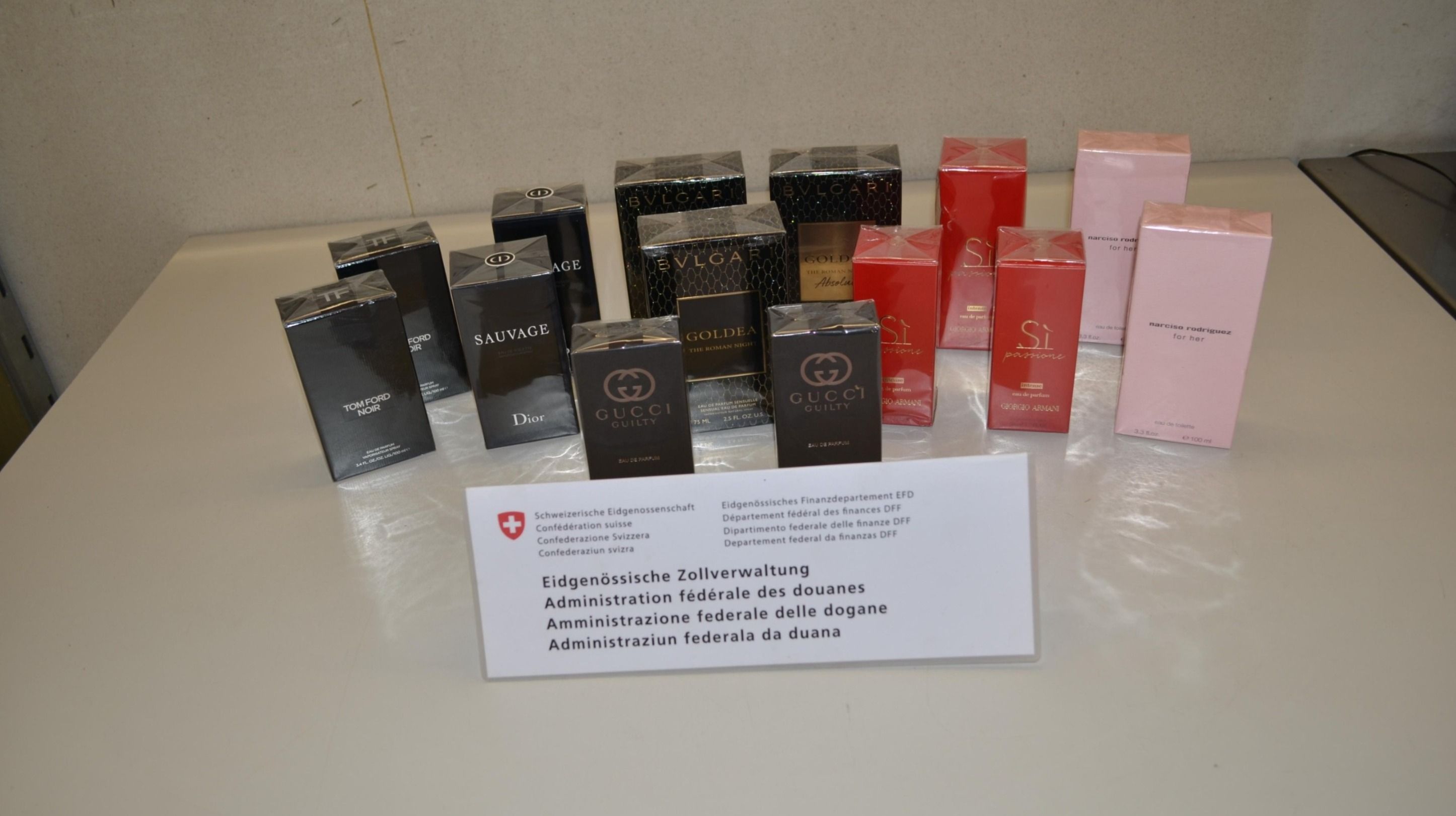 Bild: Übersicht Parfümflaschen (Quelle: EZV - 31.07.2019)
