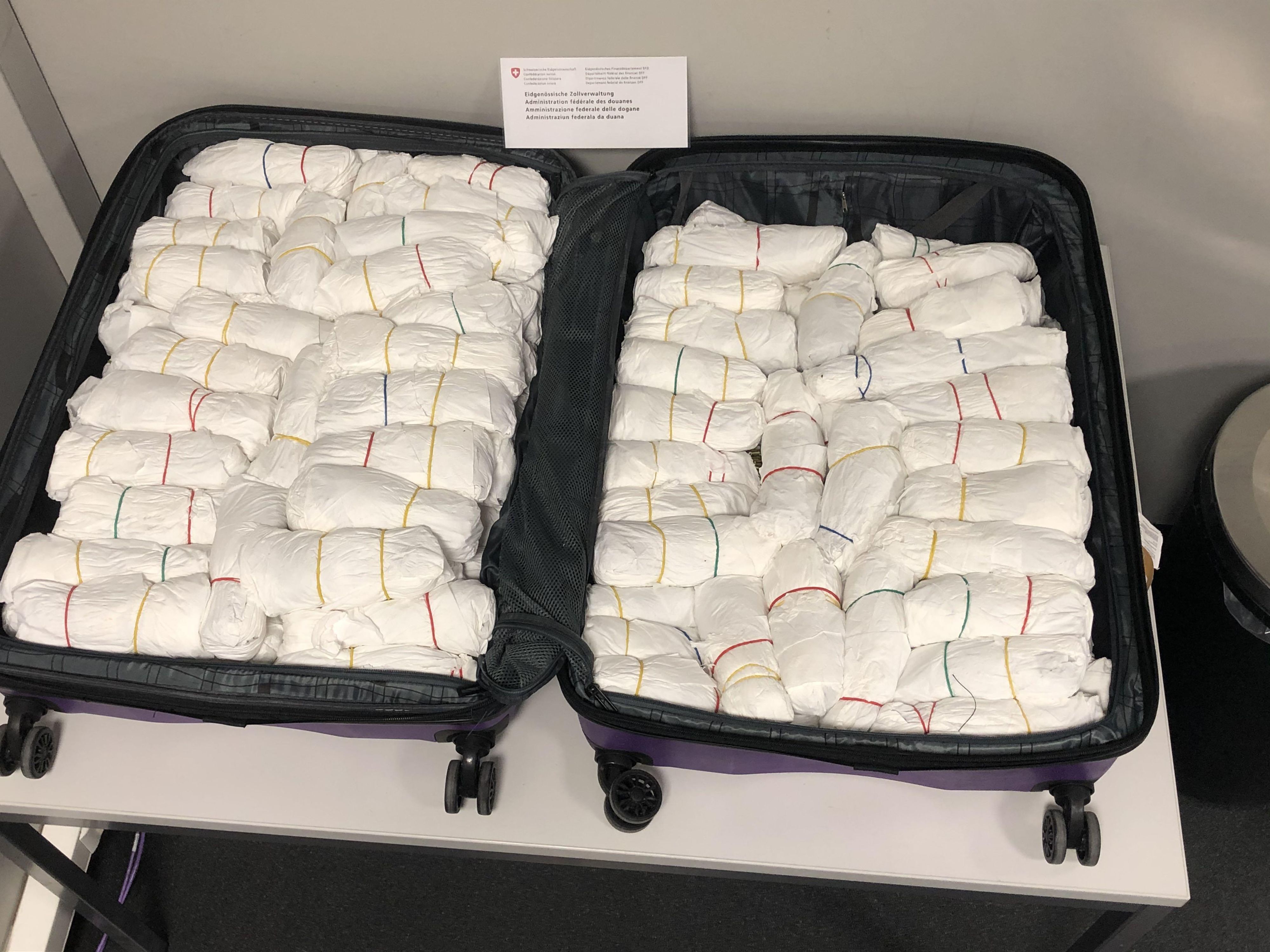 Mitarbeitende des Bundesamts für Zoll und Grenzsicherheit (BAZG) stellten am Flughafen Zürich mehrere Kilogramm Kokain im Gepäck einer Reisenden fest. Versteckt war das Betäubungsmittel jeweils in einem Koffer mit doppeltem Boden.
