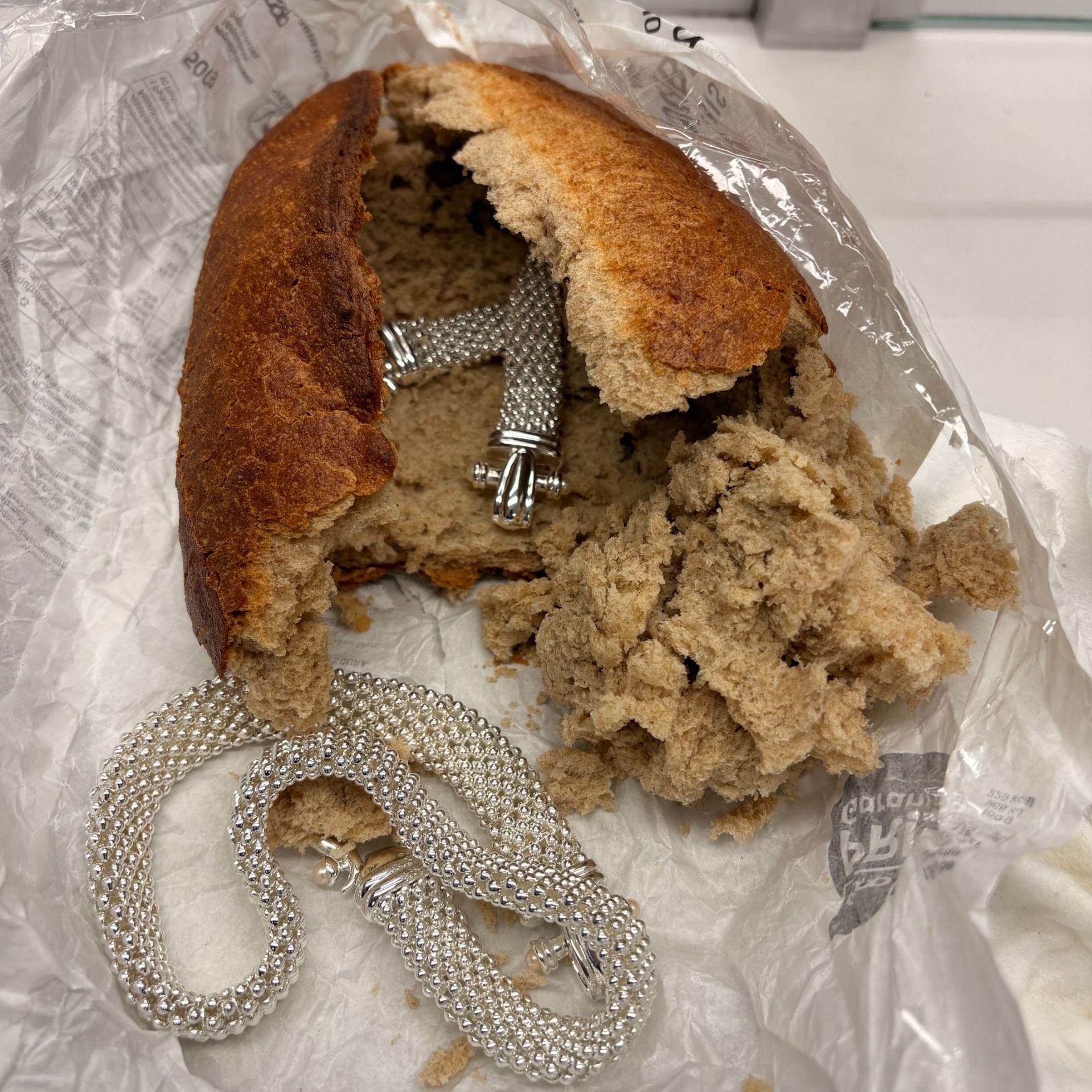 Bild 3: Mutmassliches Diebesgut (Schmuckstücke) im Brotlaib (Quelle: BAZG 24.112025)