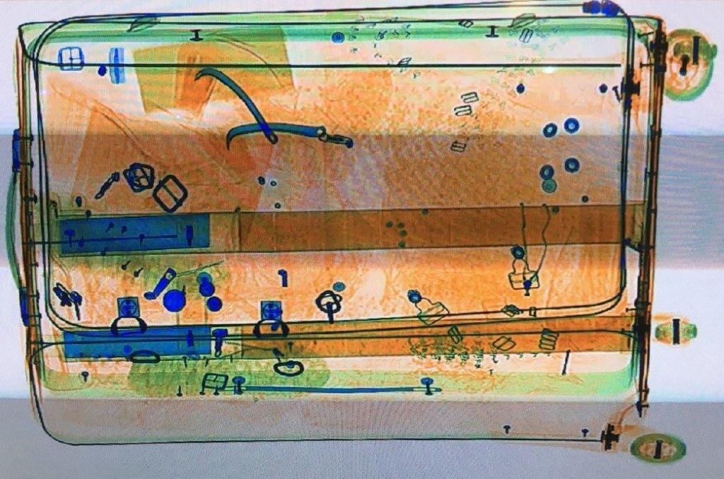 Bild: Röntgenbild Koffer mit doppeltem Boden (Quelle BAZG)
