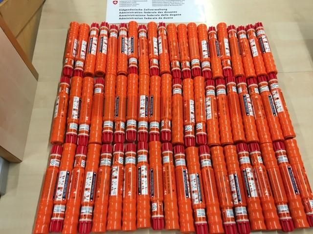 Basel (BS): Bei der Kontrolle des Fahrzeugs wurden zwei Kisten mit fast 500 Paketen zu je rund 100 Gramm vermeintlichen Cannabis-Produkten festgestellt. Die Ware wurde als CBD deklariert, aber Unstimmigkeiten bei der mitgeführten Dokumentation erhärteten den Verdacht, dass es sich um Produkte mit synthetischen Cannabinoiden handeln könnte. Die Ware wurde deshalb vorsorglich beschlagnahmt und die Personen wurden aus der Kontrolle entlassen.