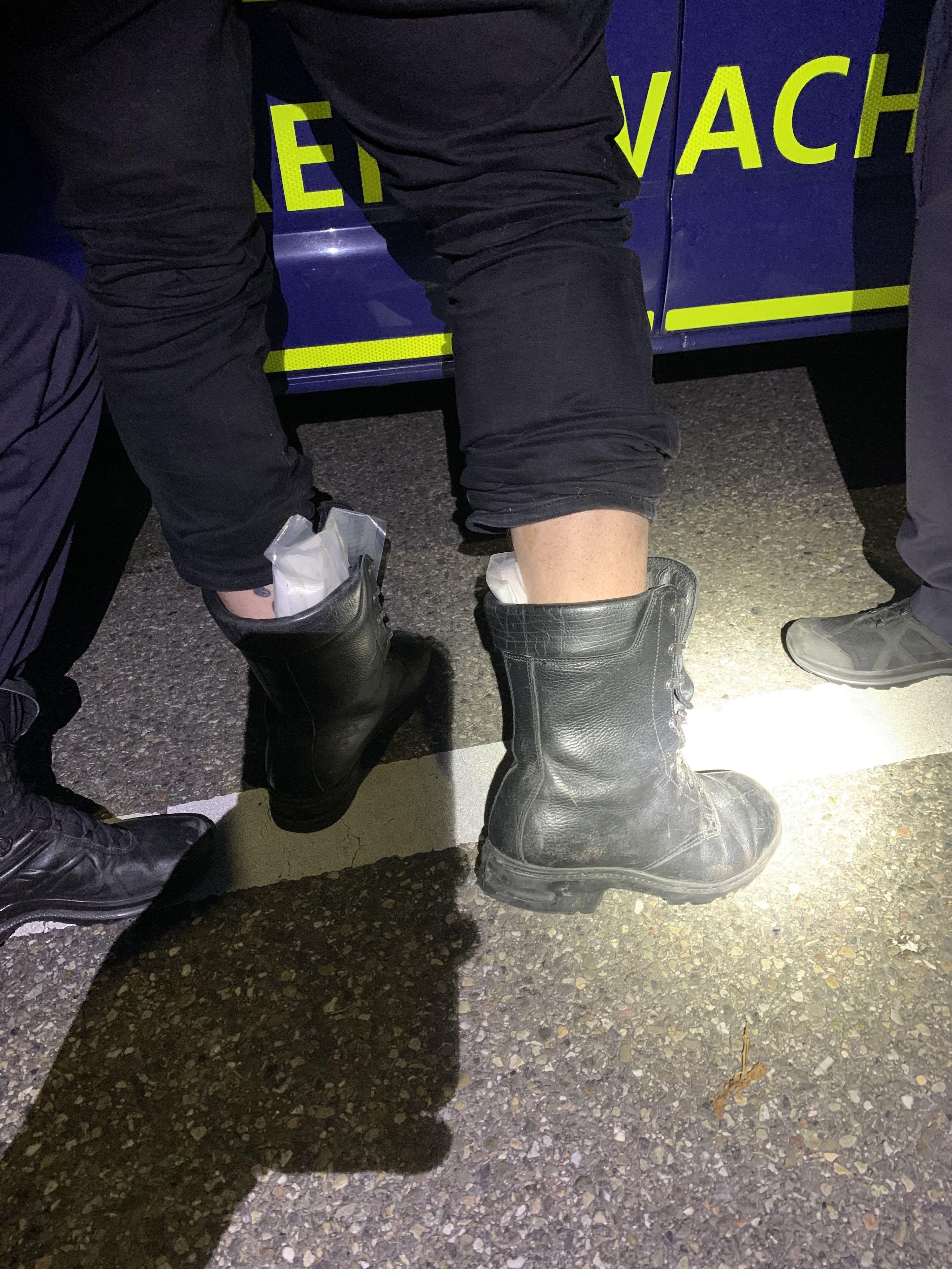 Bild: Amphetamin in Schuhen (Quelle: EZV - 27.02.2020)