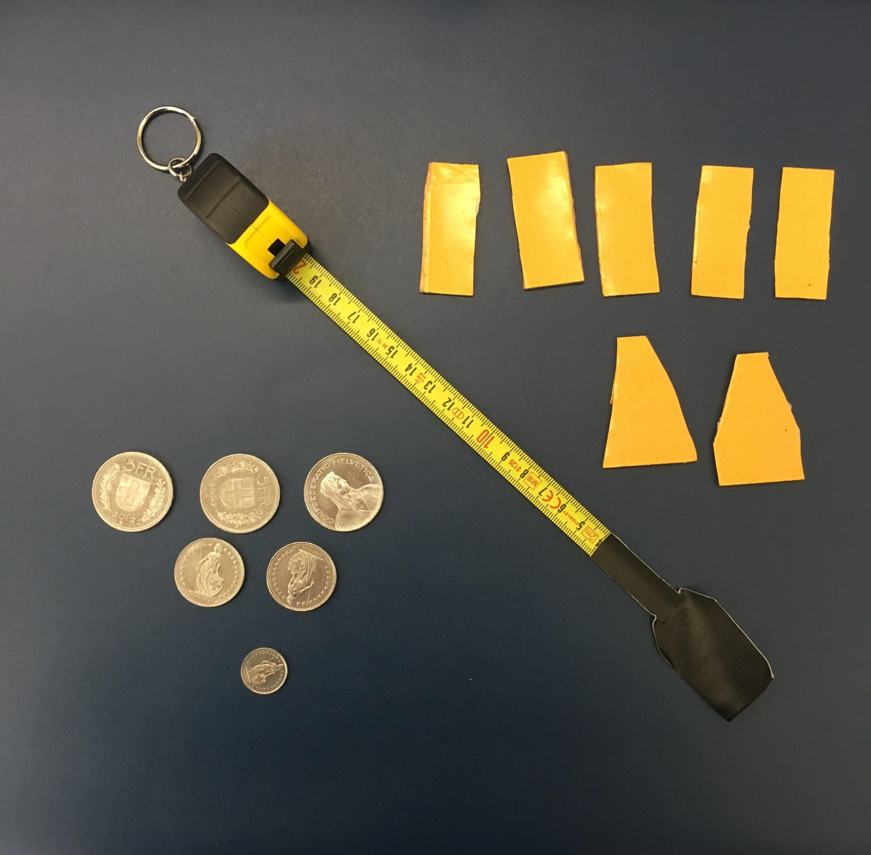Eine alte, schwarze Pistole mit sichtbaren Gebrauchsspuren neben einem Massband zur Grössenbestimmung. — © BAZG