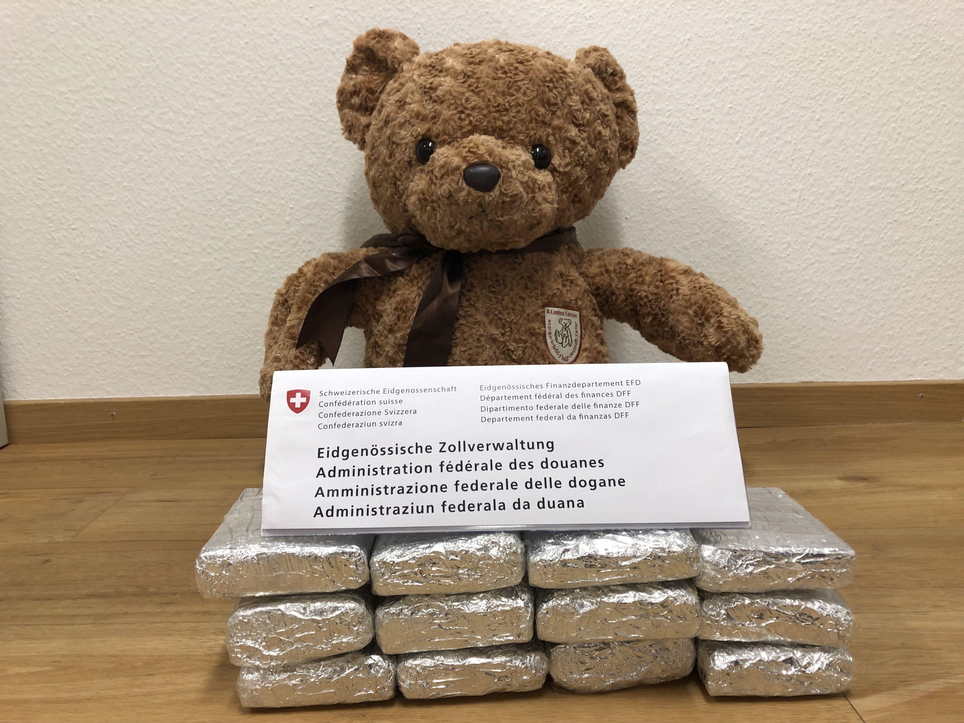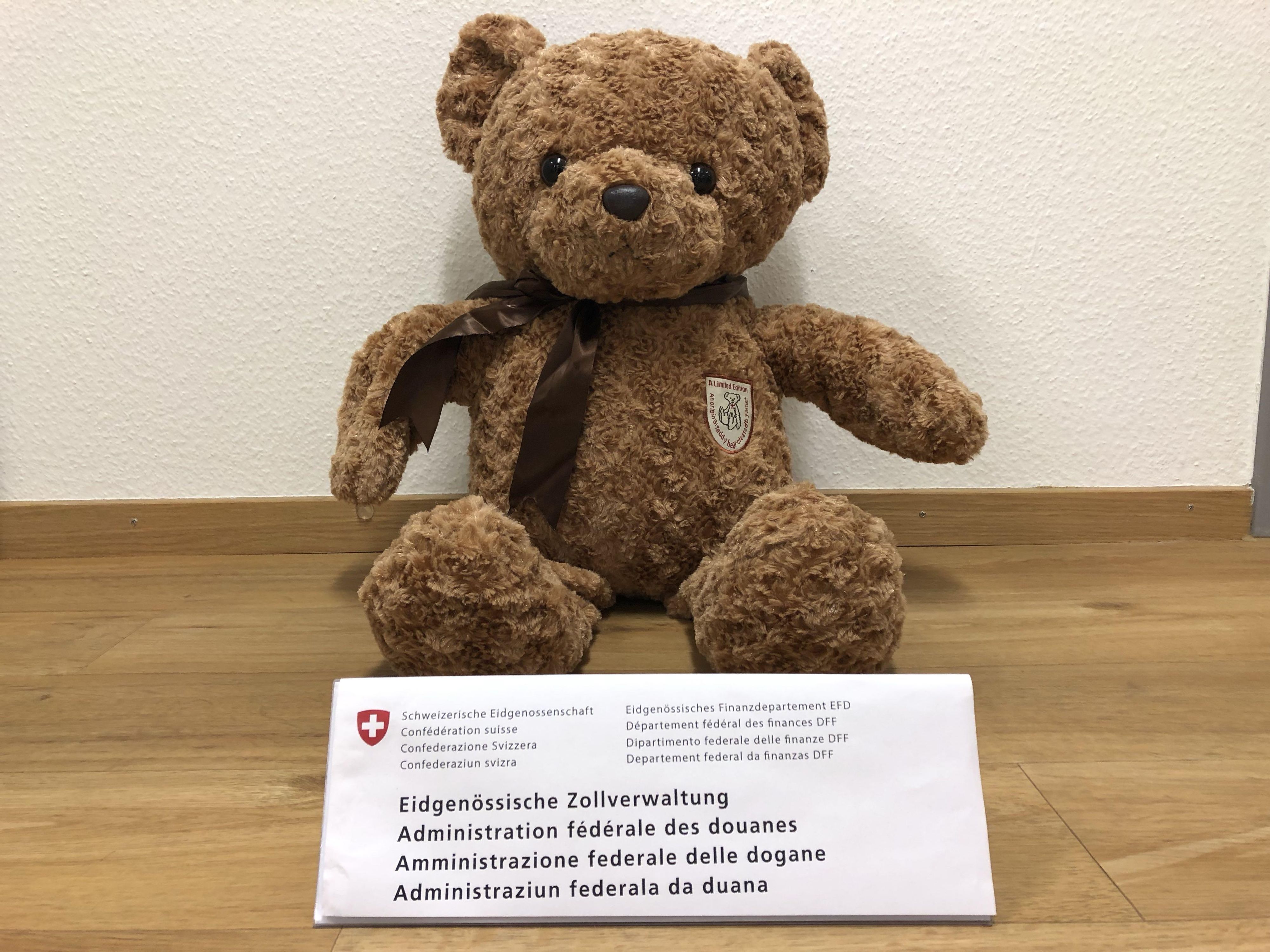 Bild: sichergestelltes Marihuana - Teddybär (Quelle: EZV - 15.07.2019)