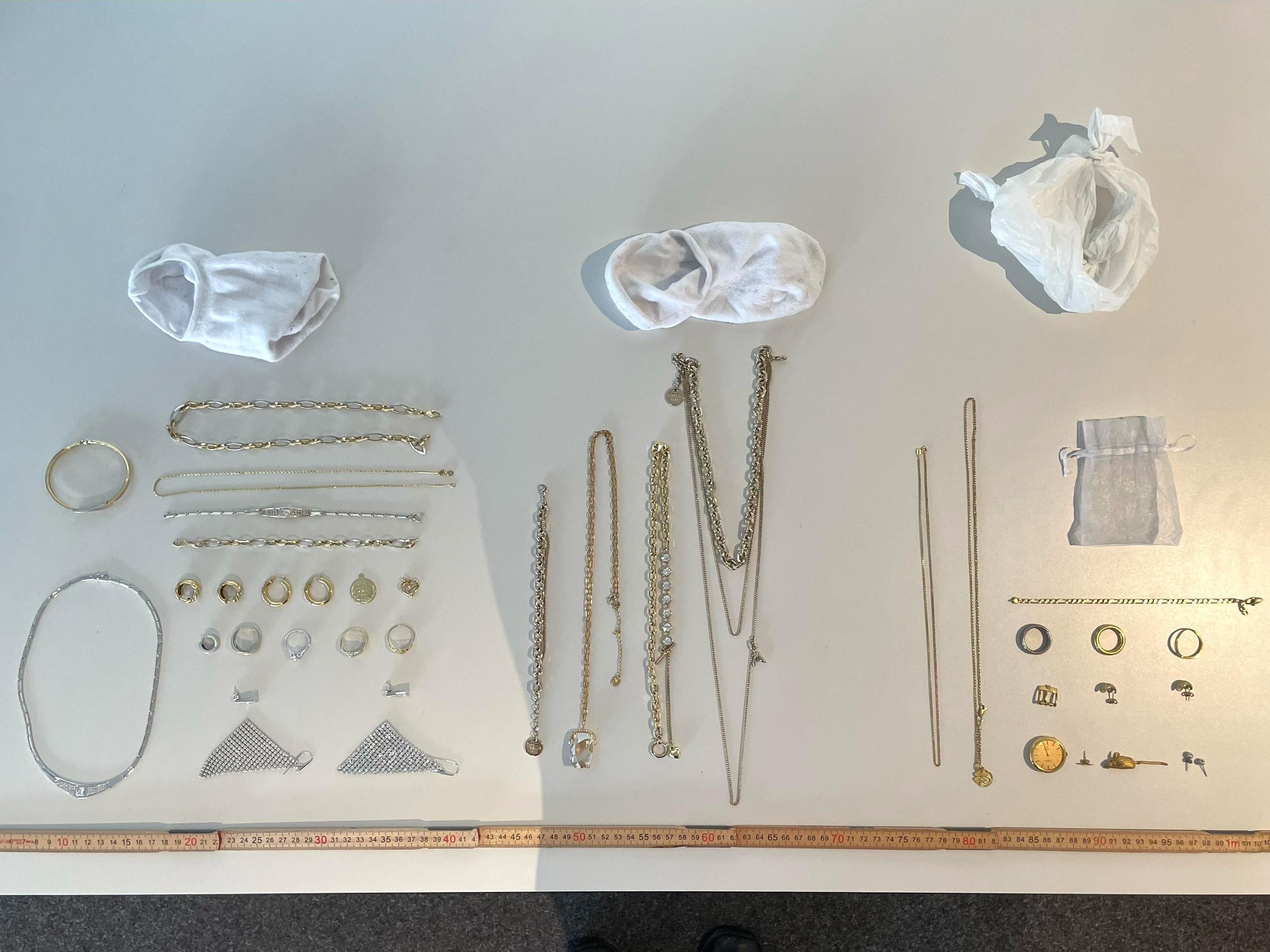 Konfiszierter Schmuck auf einem Tisch ausgebreitet. — © BAZG