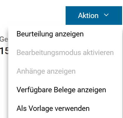 Weitere Funktionen sind direkt im Gesuch im Aktionsbutton zu finden.