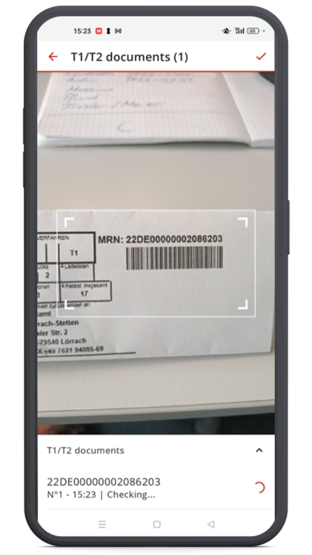 - Scan the T1/T2 transit documents (MRN)