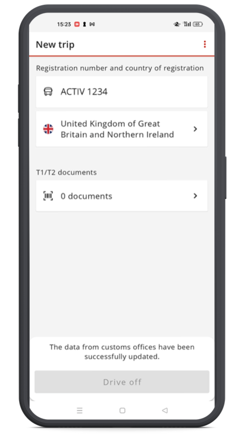 Create a transport declaration and then load it into the Activ App either via Remote Loading or manually using a DTS Scan.