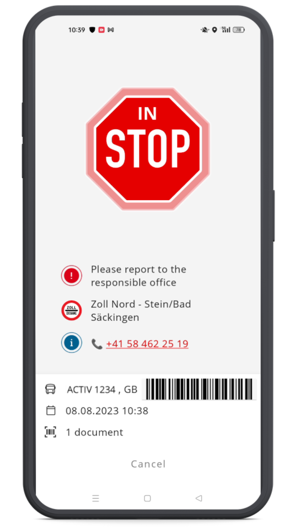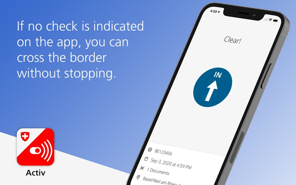 Use the free Activ app to effectively manage your transit documents and speed up customs clearance in Switzerland. The app provides a straightforward five-step process for entering vehicle and document data.