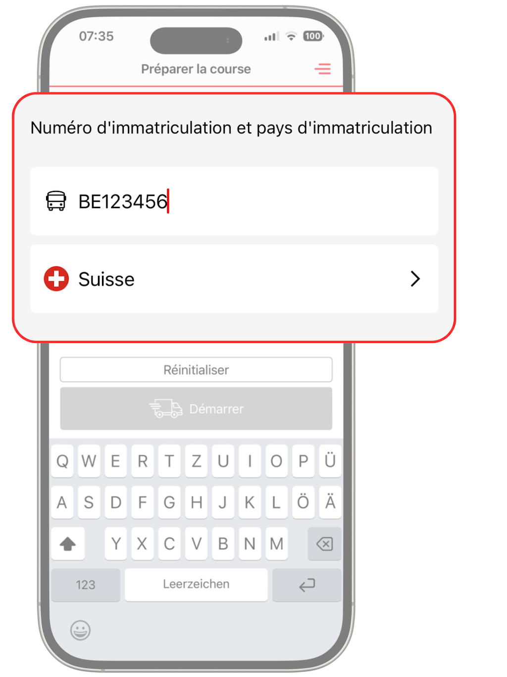 Important : les données concernant le véhicule (numéro et pays d’immatriculation) figurant dans l’app Activ et dans la déclaration de transport doivent être identiques.