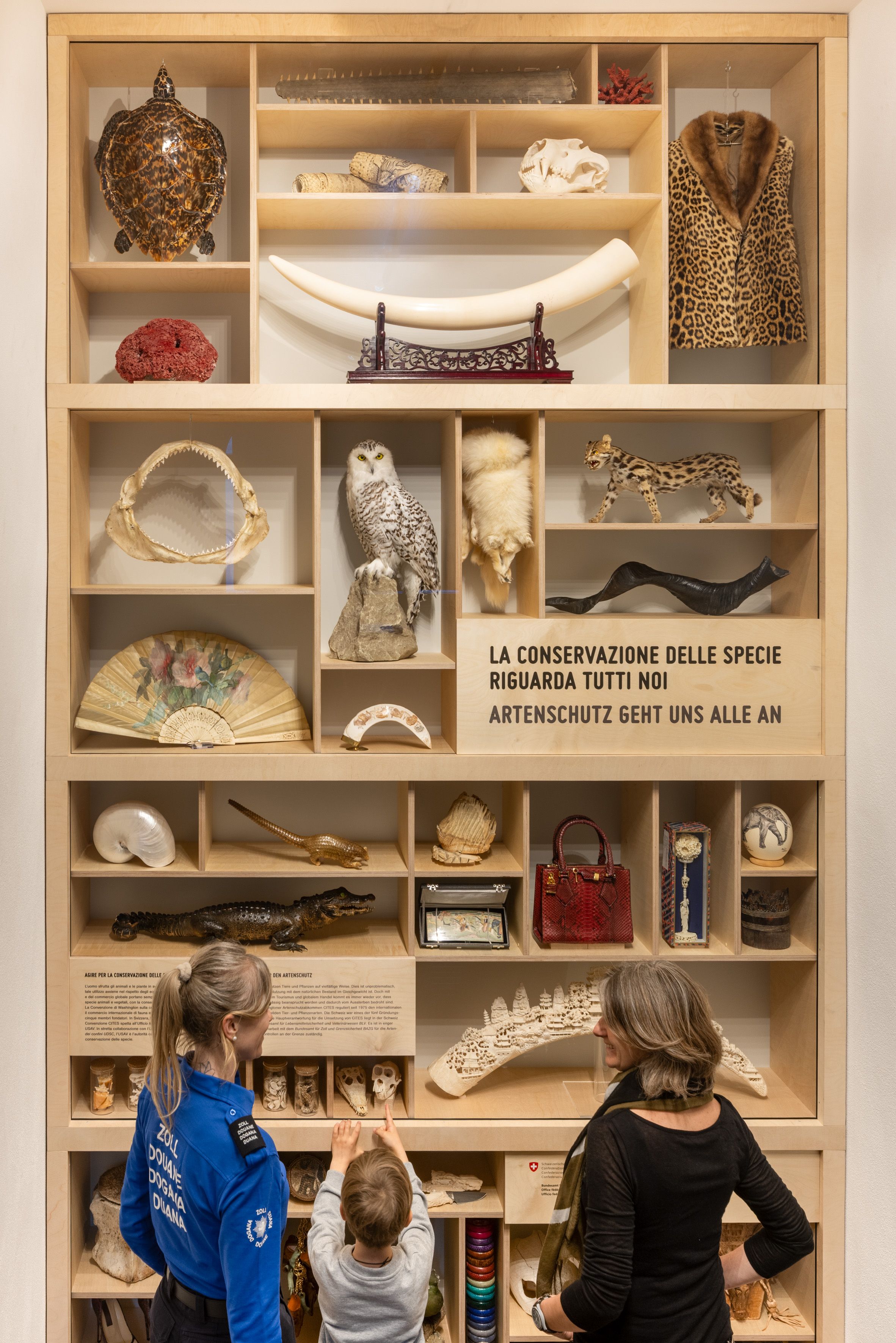 Organisée avec le concours de l’Office fédéral de la sécurité alimentaire et des affaires vétérinaires (OSAV), la nouvelle exposition « La conservation des espèces nous concerne tous » du Musée suisse des douanes de Cantine di Gandria présente les différents aspects de la CITES et sensibilise le public au respect des règles d’importation et au rôle fondamental que joue l’OFDF dans ce domaine.