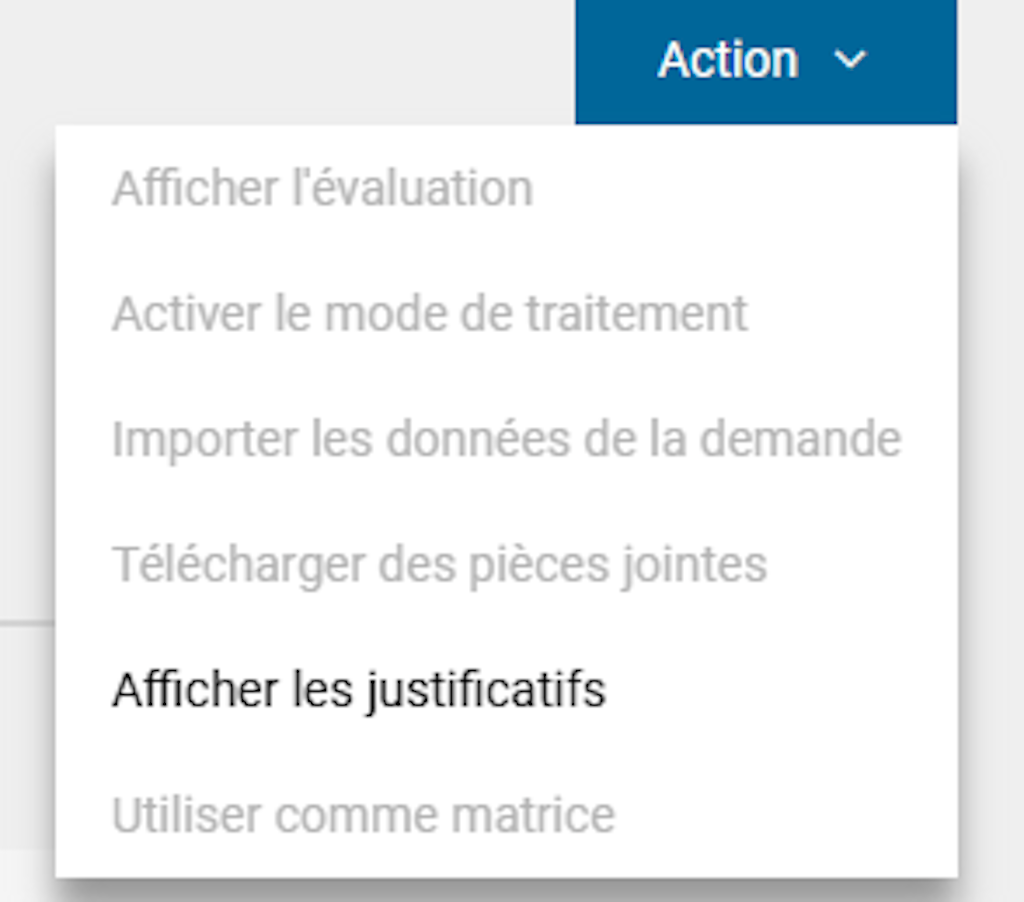- Afficher les justificatifs : cette rubrique vous mène directement à Chartera Output, où vous pouvez trouver et télécharger tous les documents relatifs à la demande.