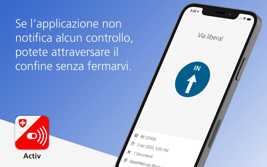 Utilizzare l’app gratuita Activ per attraversare ancora più velocemente la dogana svizzera.