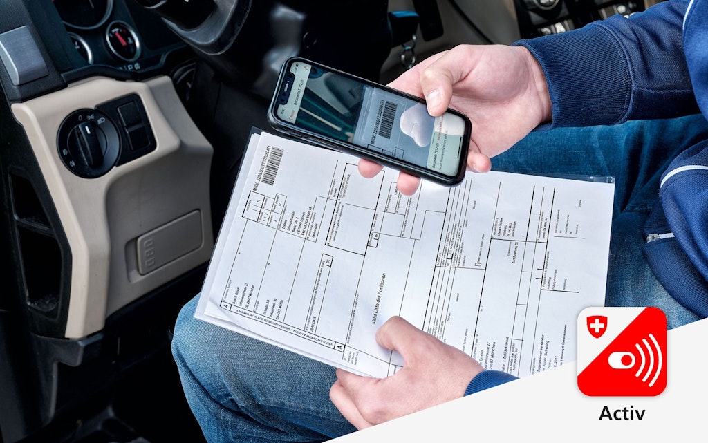 Registrate una dichiarazione di trasporto e caricatela nell'app Activ tramite «Remote Loading» o manualmente con uno «DTS Scan».