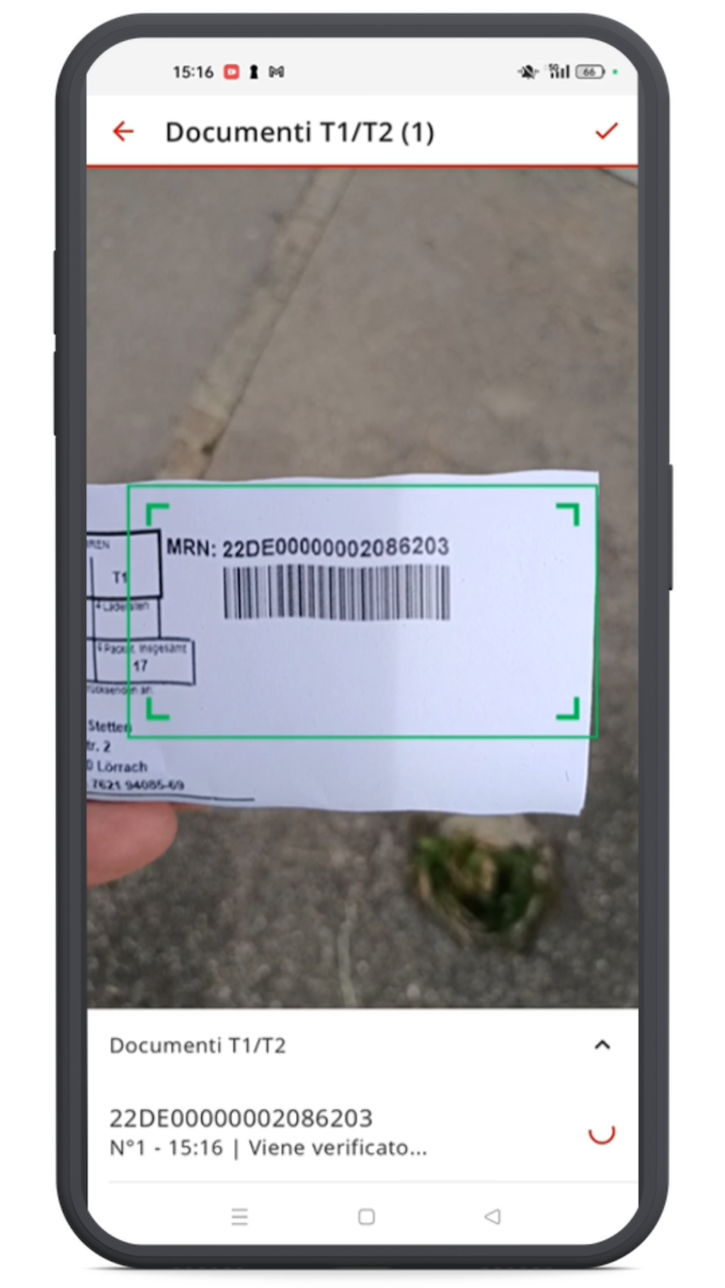 - scansionare i documenti di transito T1 / T2 (MRN)