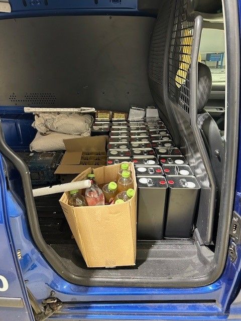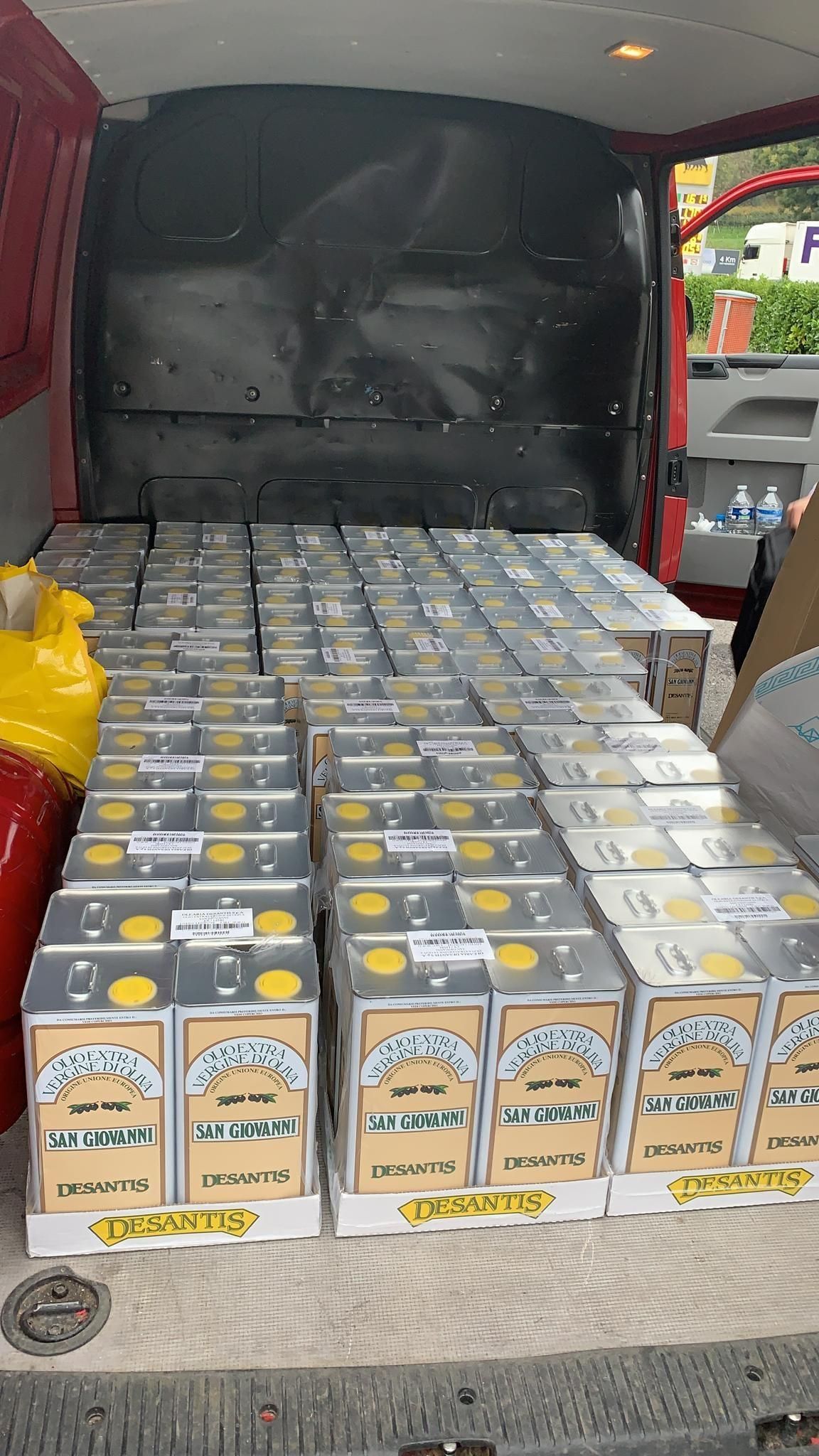 Contenitori di olio d'oliva stoccati in un veicolo. — © UDSC