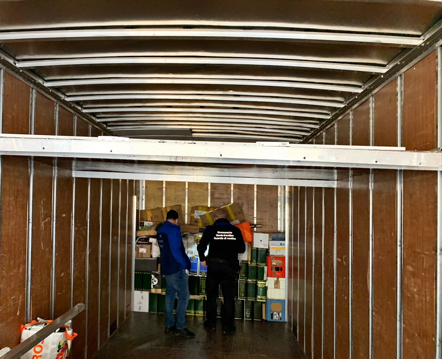 Nascosti nel doppiofondo del camion chili di salsicce, olio, vino e formaggio (16.03.2021)