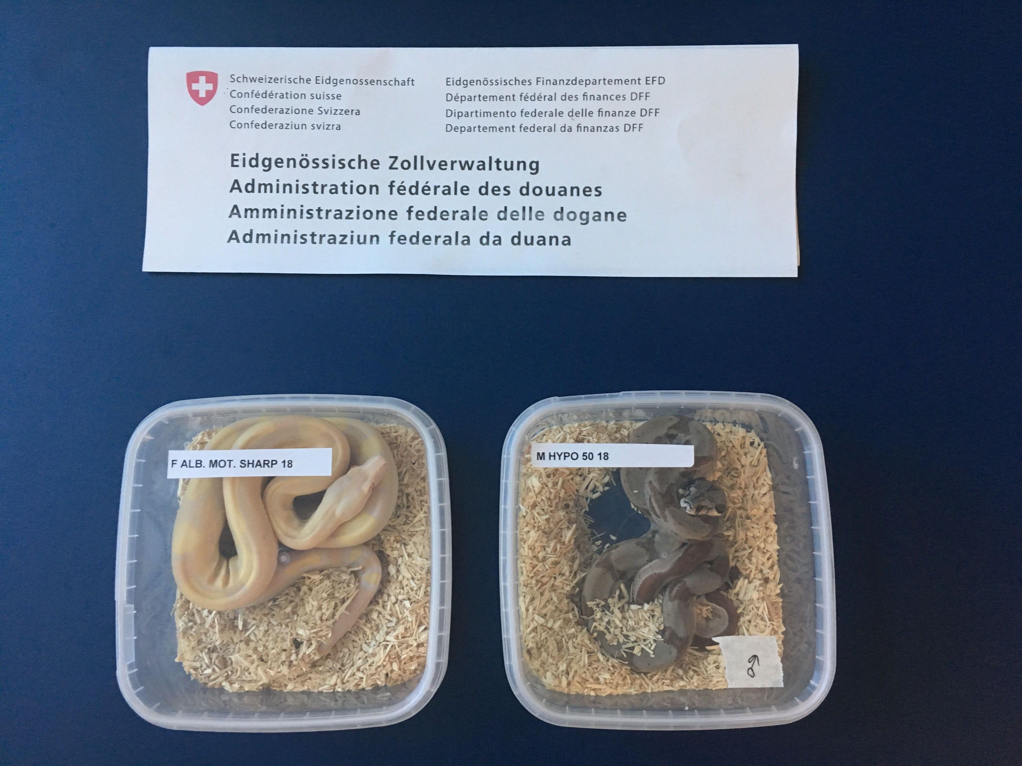 Fotografia Sequestro di Shisha (UDSC: 11.09.2025) — © UDSC Gli agenti dell’Ufficio federale della dogana e della sicurezza dei confini (UDSC) hanno fermato un’auto con a bordo due uomini che trasportavano un pitone reale vivo. Il veicolo è incappata in un controllo nelle retrovie, effettuato la settimana scorsa nel Locarnese. Il rettile, acquistato in Italia, non disponeva dell’apposita autorizzazione CITES prevista per le specie protette necessaria all’importazione. Il pitone, che si trovava in una scatola appoggiata sulle gambe del passeggero, è stato sequestrato. Inoltre, il conducente dovrà procedere allo sdoganamento del mezzo in quanto l’uomo, domiciliato in Ticino, era alla guida di un veicolo con targhe italiane.
